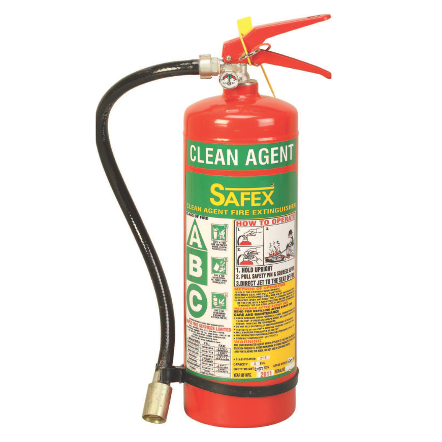 Safex Clean Agent Saclon MS extinguisher delivers reliable and eco-friendly fire safety with a sturdy mild steel body.