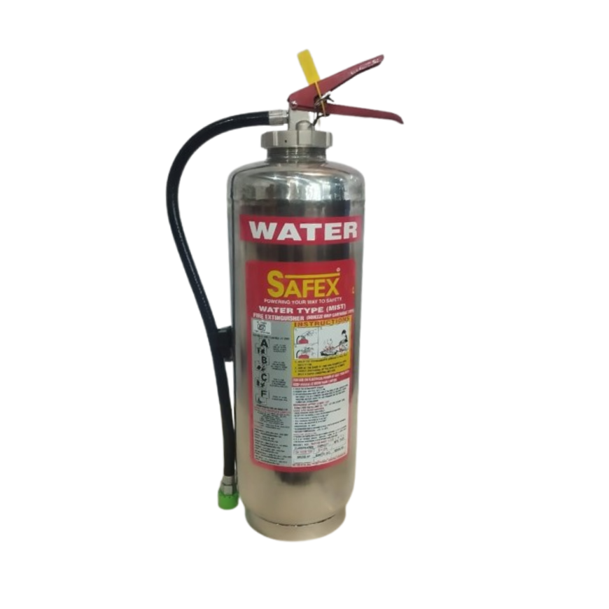 Safex Kitchen Fire/Water Mist Cartridge SS extinguisher combines stainless steel durability with a cartridge-based mist system.